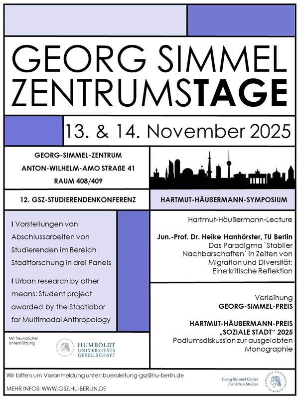 Georg Simmel Days including the 12th Student Conference and the awarding of the Hartmut Häußermann Prize. Further information about the program can be found here.